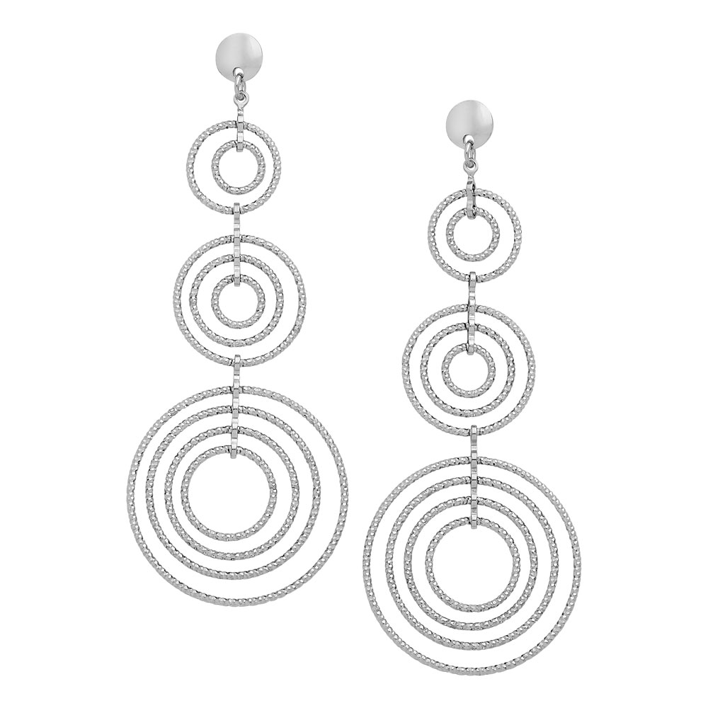 .925 silver multi diamond-cut circles 2" 3/4 long post earrings