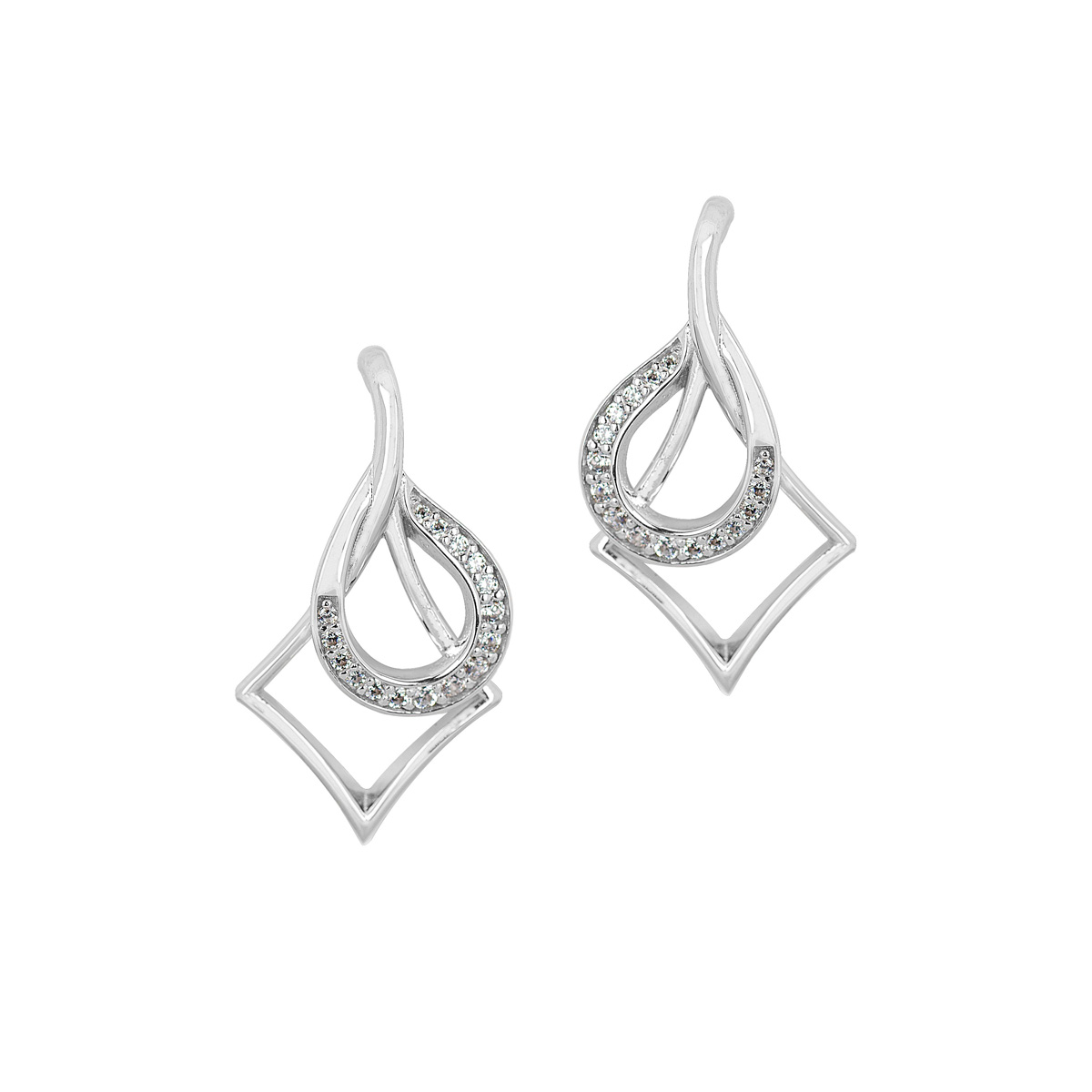 Silver Open Loop with CZs over a Plain Lozenge Shape Necklace and Earrings Set