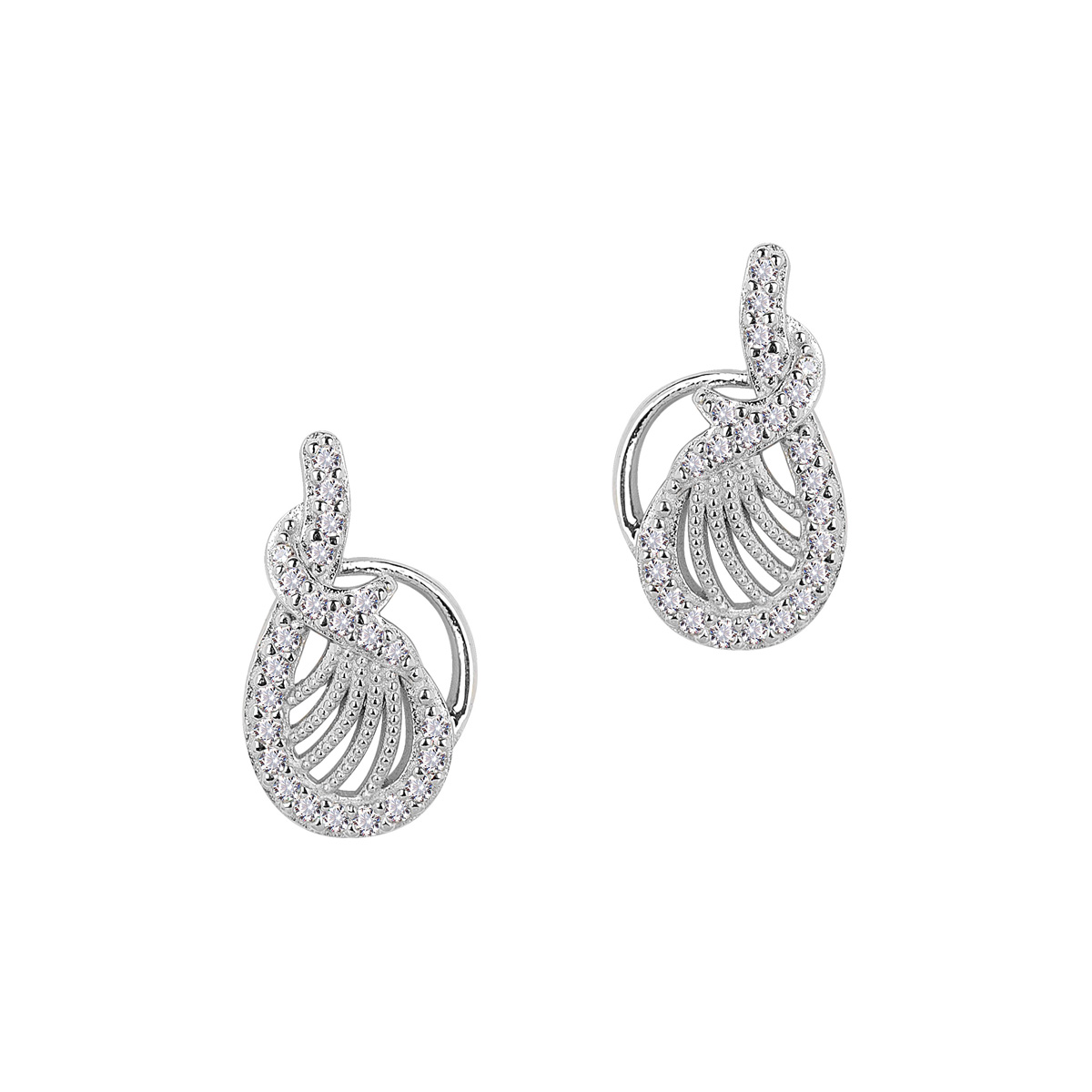 Silver Open Shell with CZs Post Earrings