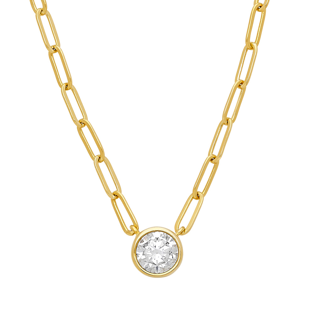 Silver Paperclip Chain Necklace Gold-Plated with a Bezel Set 8 mm CZ