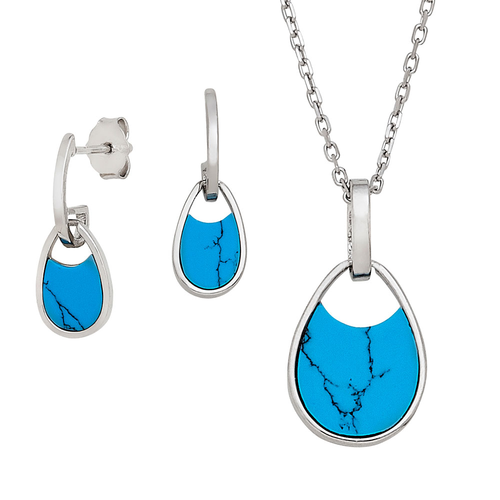 Silver Pear Shape Pendant and Earring Set with Synthetic Turquoise and CZs