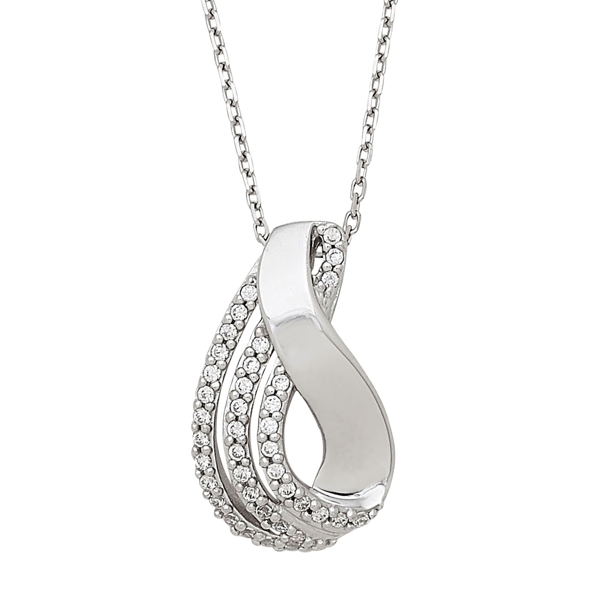 Silver Pendant Swirl Right-side Three Rows of CZs, Left-side Solid High-Polish Finish