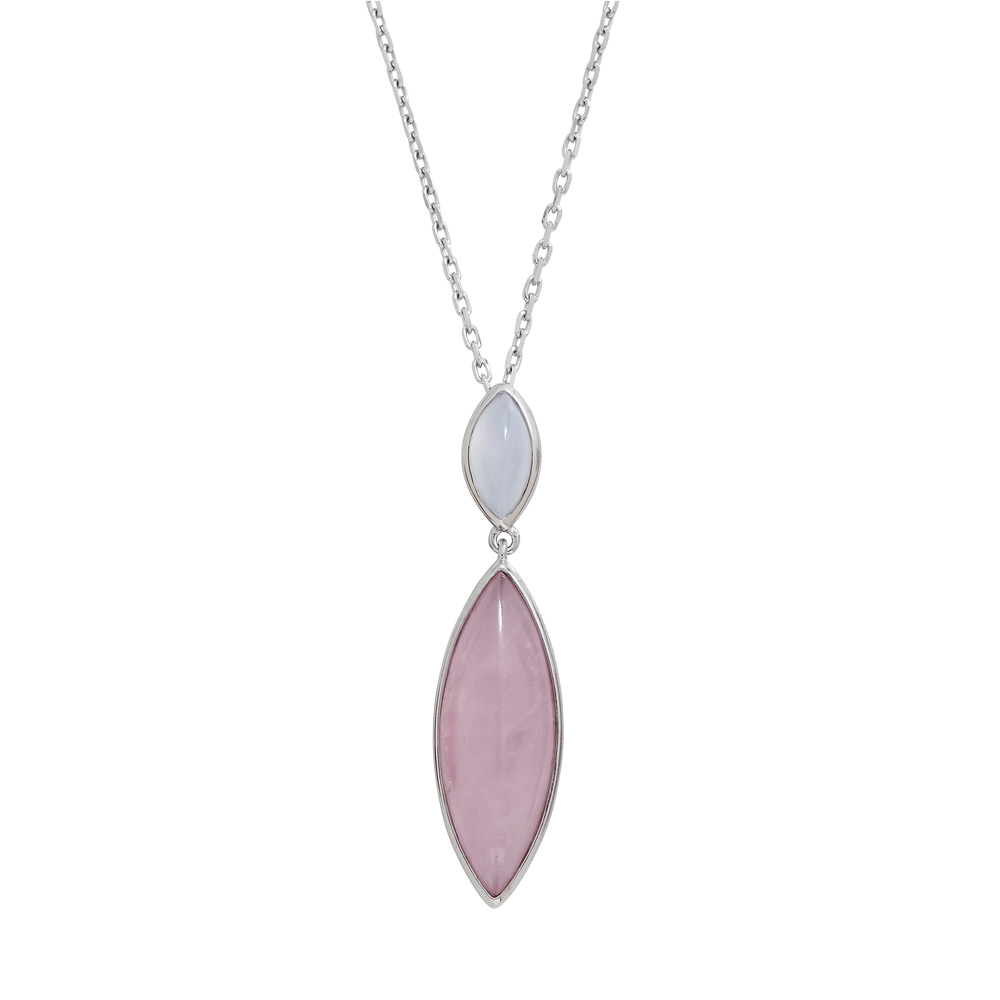 .925 Silver Pendant with Marquis Shape Chalcedony Agate + Star Rose Quartz