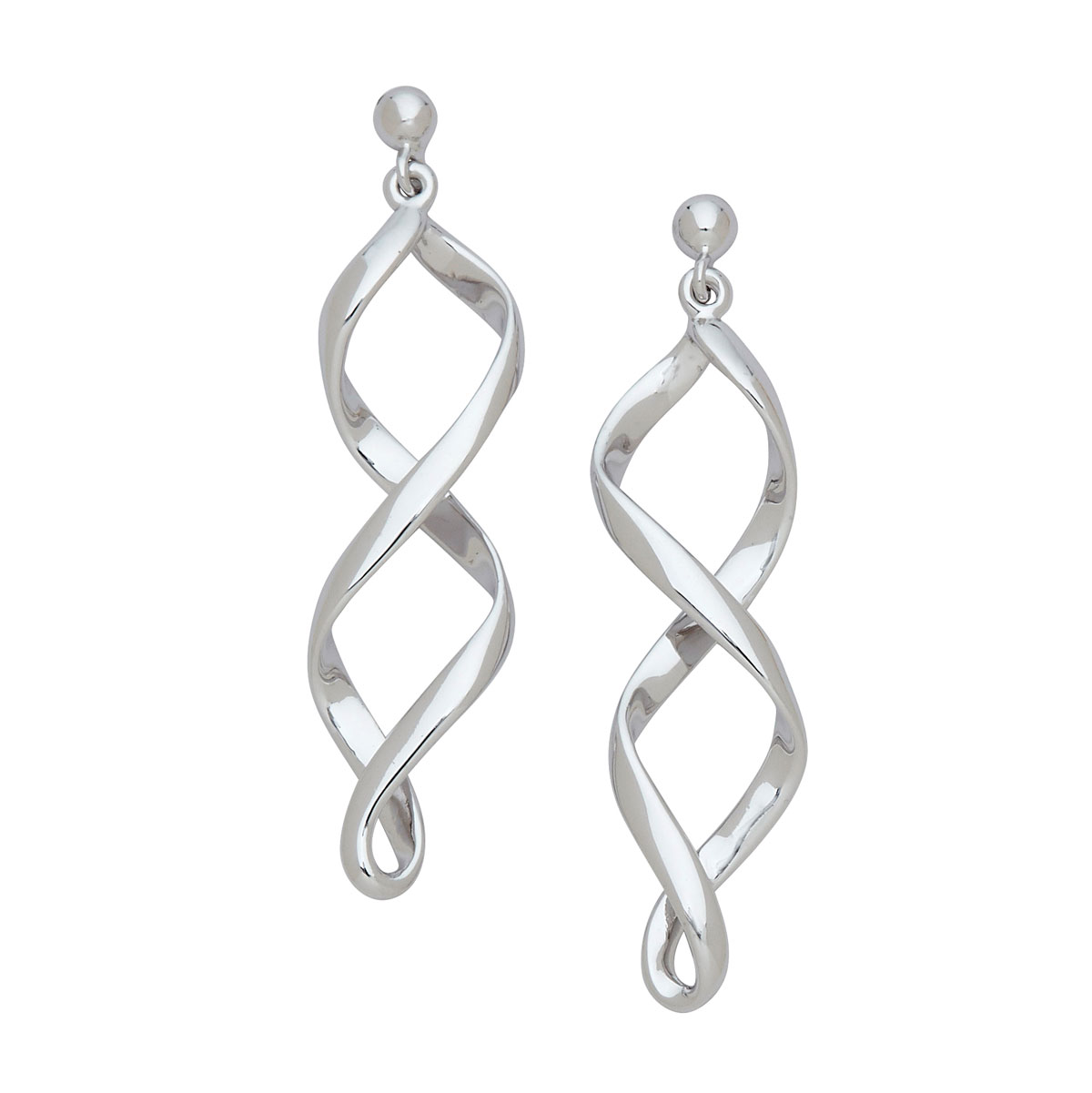 .925 Silver Plain Dangle Ribbon Twirl Earrings