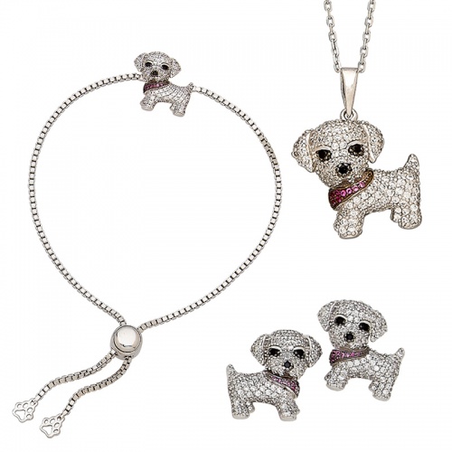 Silver Puppy with Bandana Pendant, Earring and Bracelet Set
