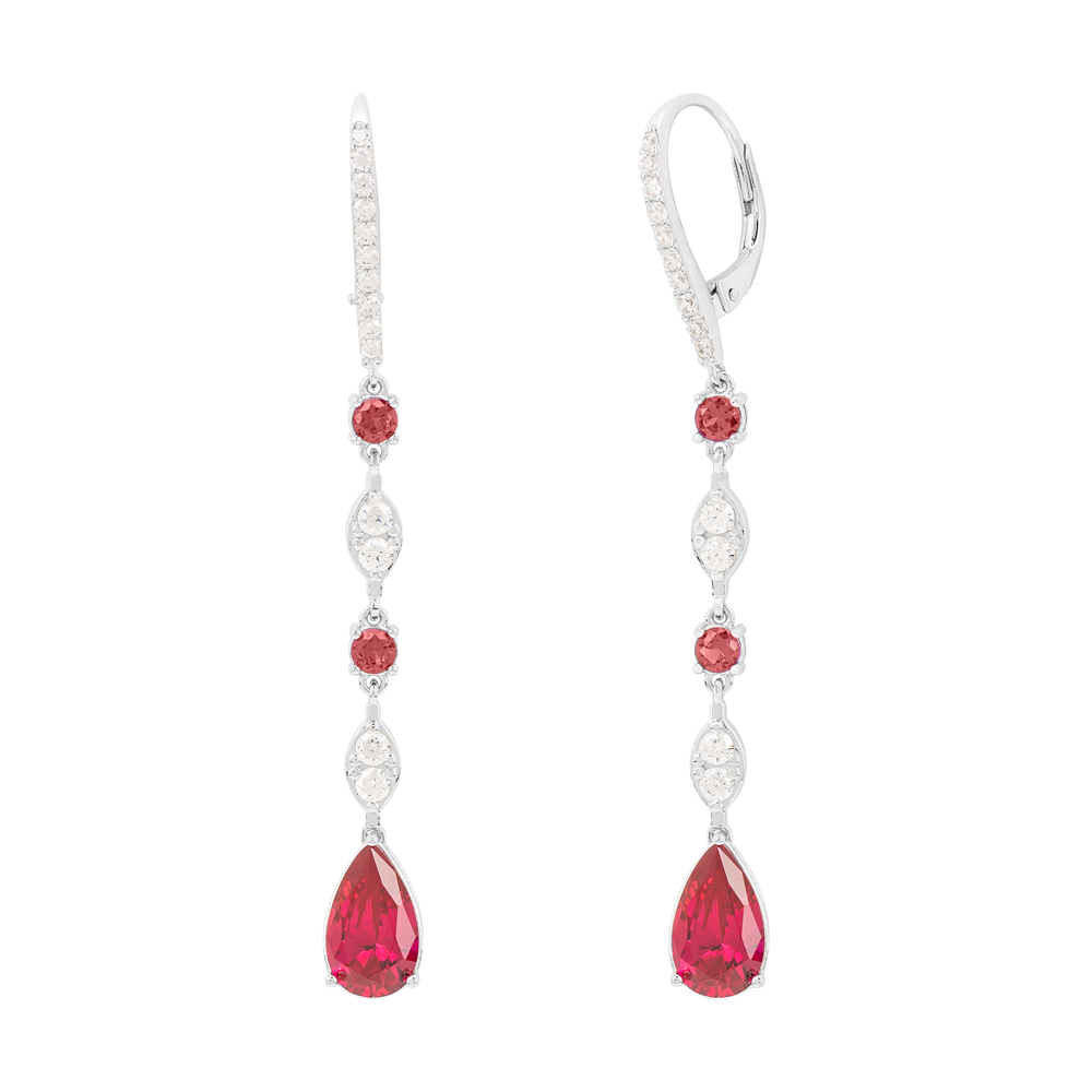 Silver Red Pear Shape CZ Drop with Clear CZ Earrings