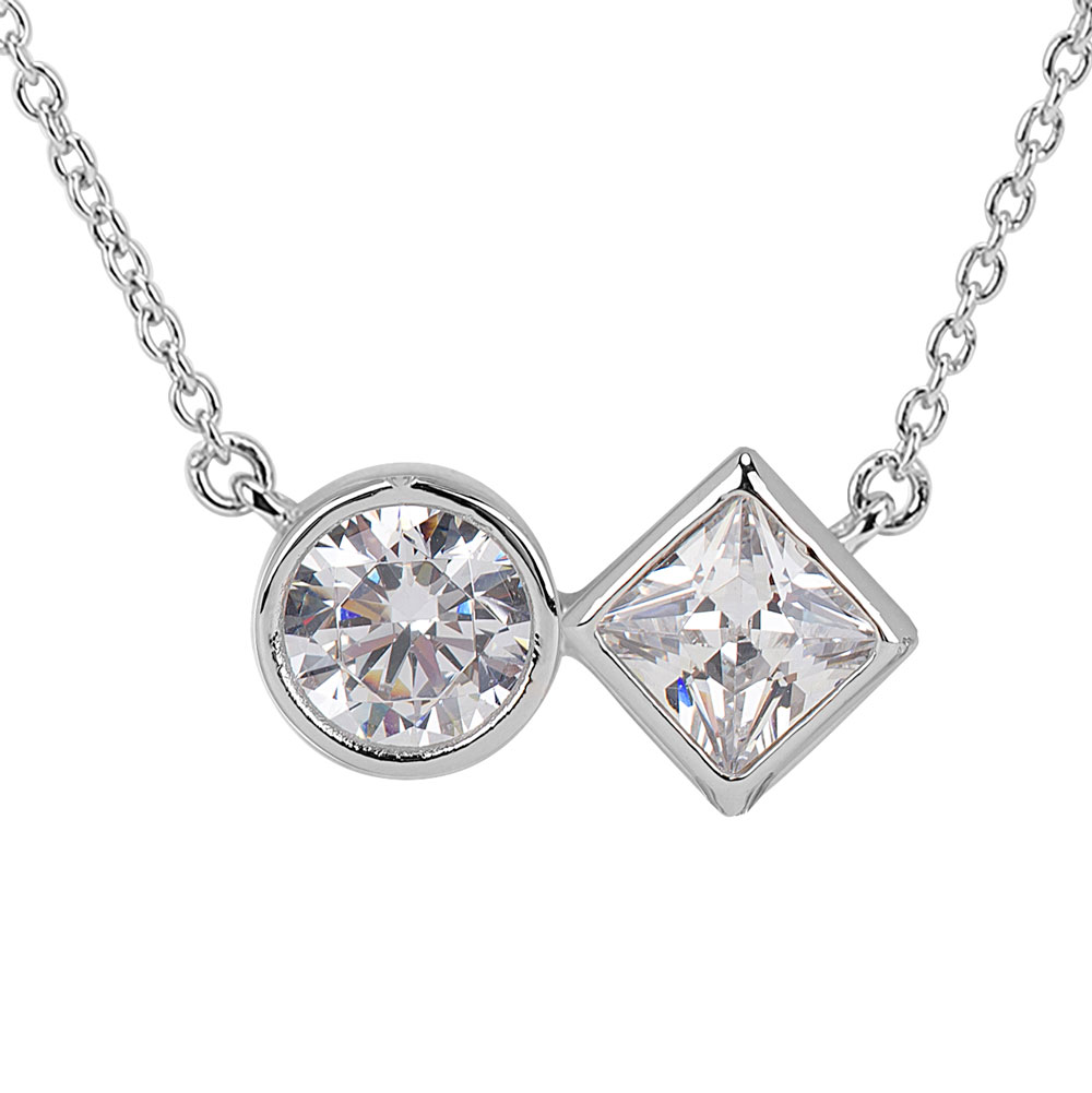 Silver Round and Princess Cut Triple A-Quality CZ Necklace