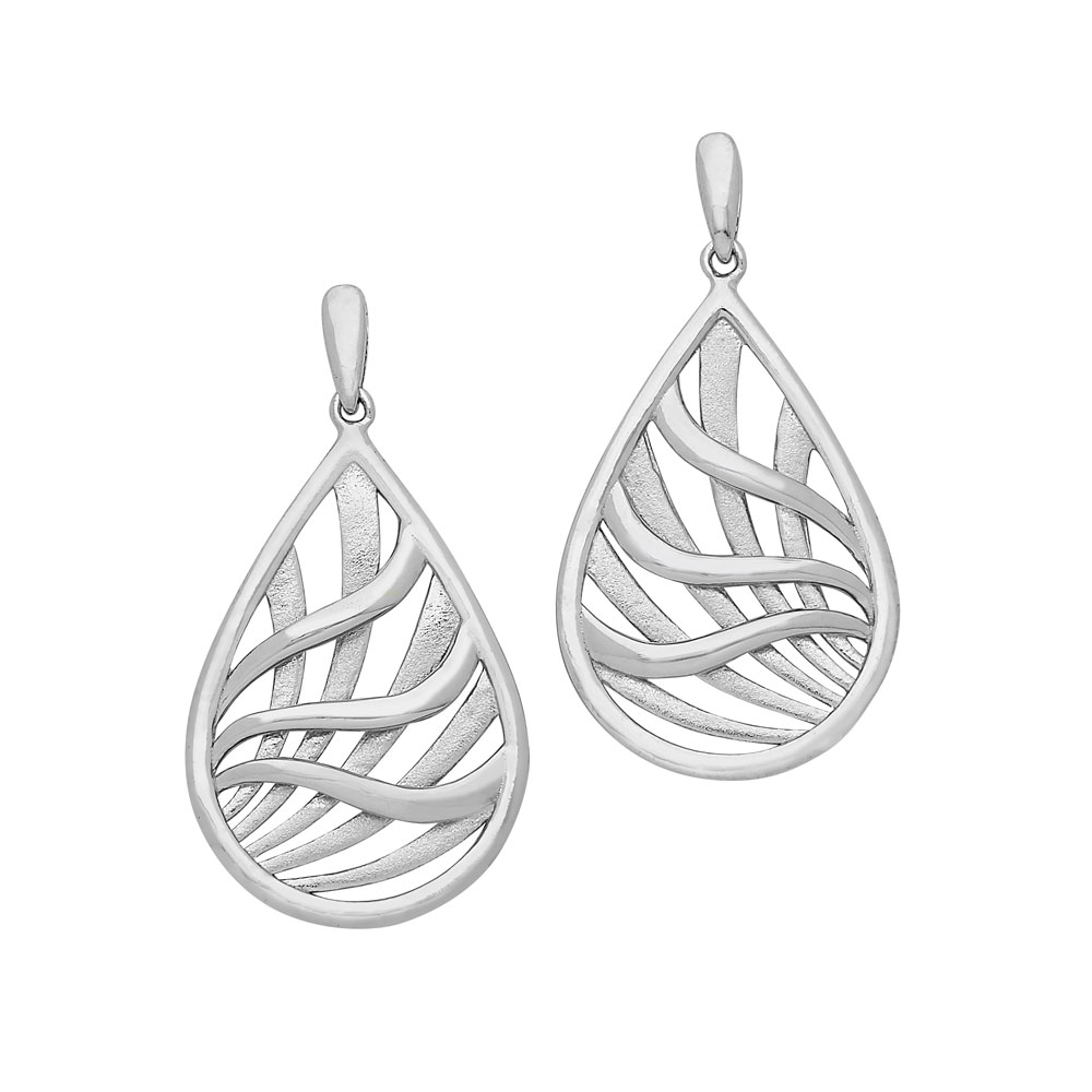 .925 Silver Sandblasted and Shiny Waves of the Sea in Water Drop Shape Post Earrings