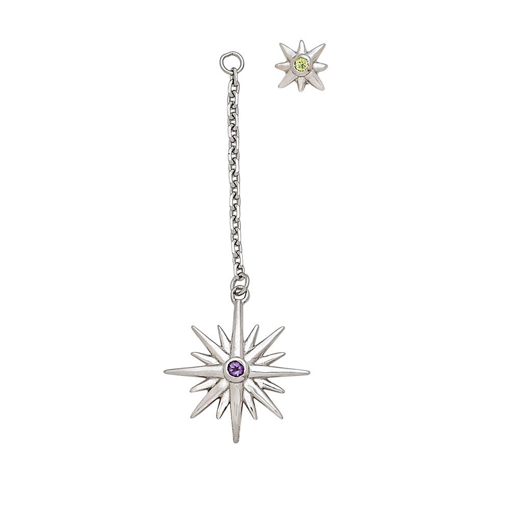 Silver Shining Star with Peridot and Amethyst Earrings