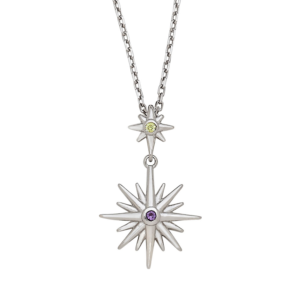 .925 Silver Shining Star with Peridot and Amethyst Pendant