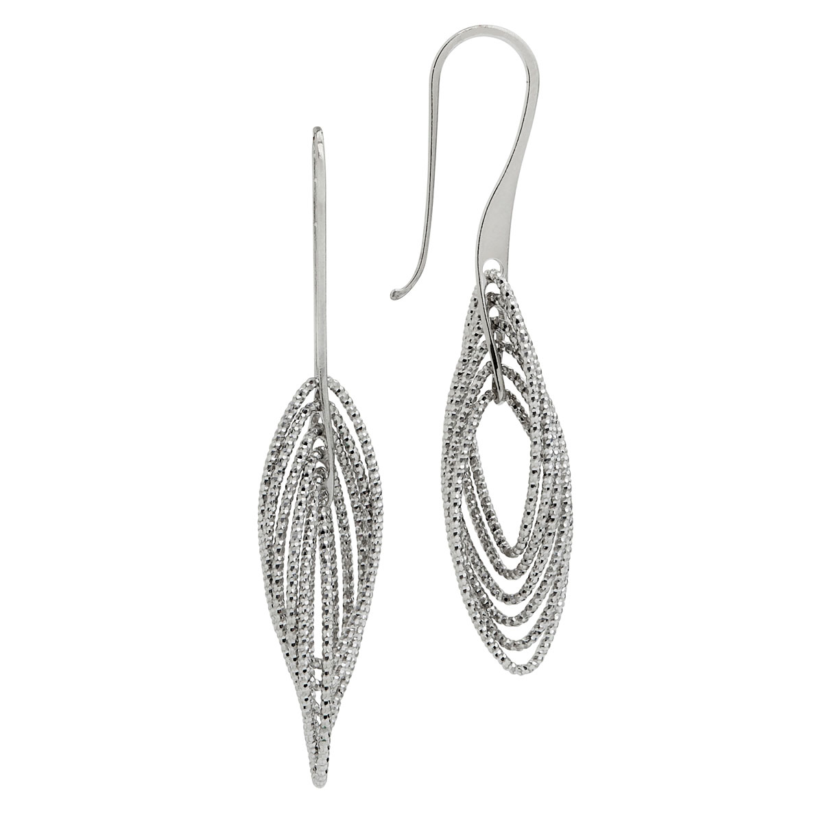.925 Silver Six Open Marquise Shape Fish Hook Earrings in Laser Cut