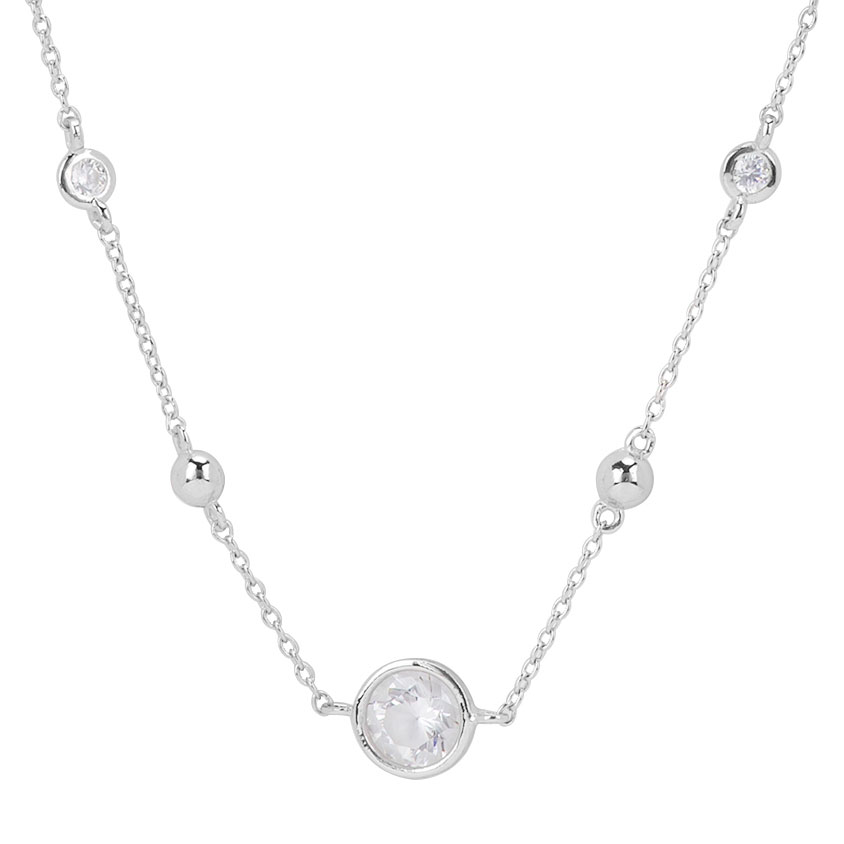 Silver Stationary Triple A-Quality Clear CZ Necklace 16" + 2" Extender