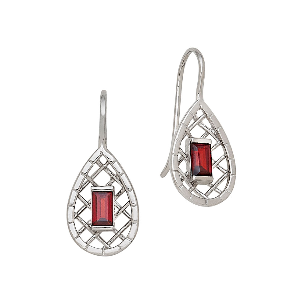 Silver Teardrop Fish hook Earrings with Genuine Garnet