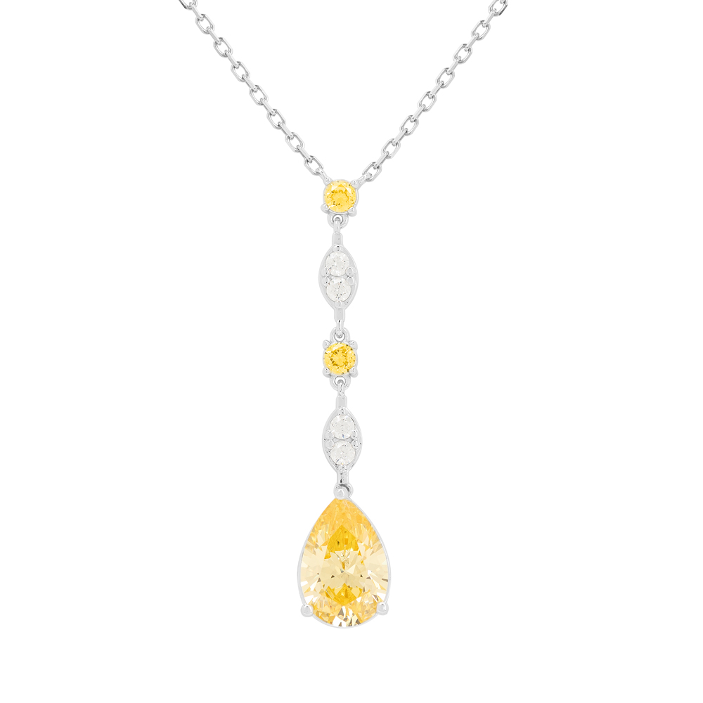 Silver Yellow Shape CZ Drop with Clear CZ Necklace