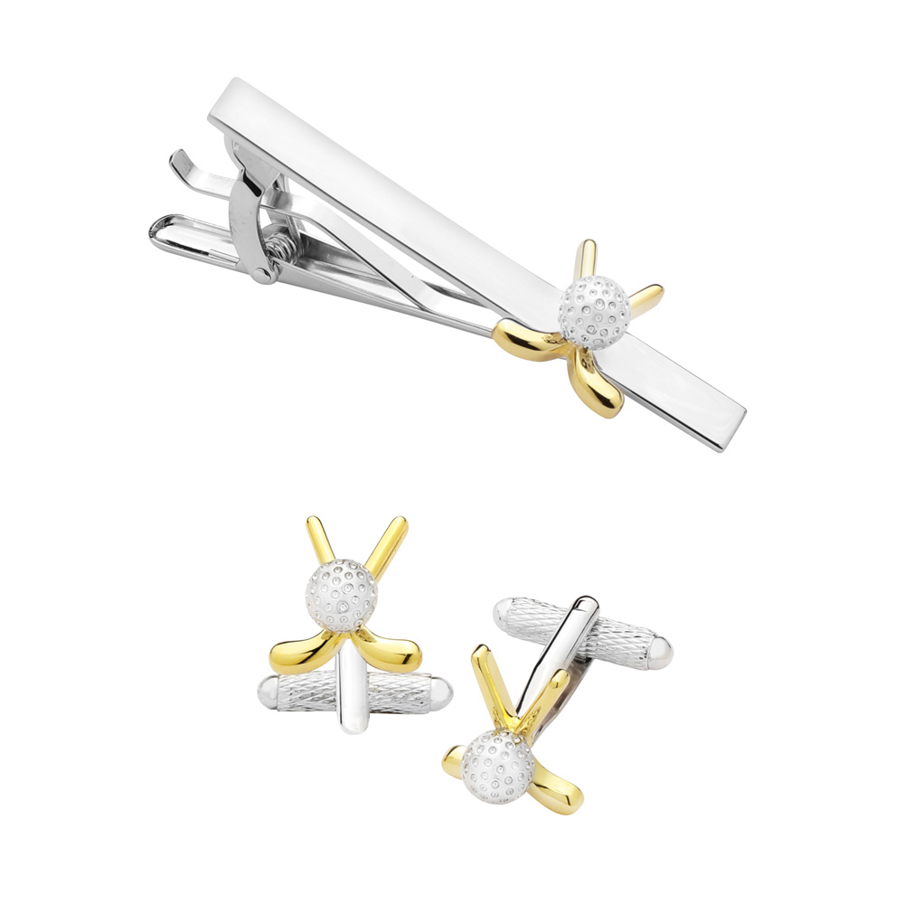 BRASS Men's Golf Ball and Clubs Tie Clip Two-Tone