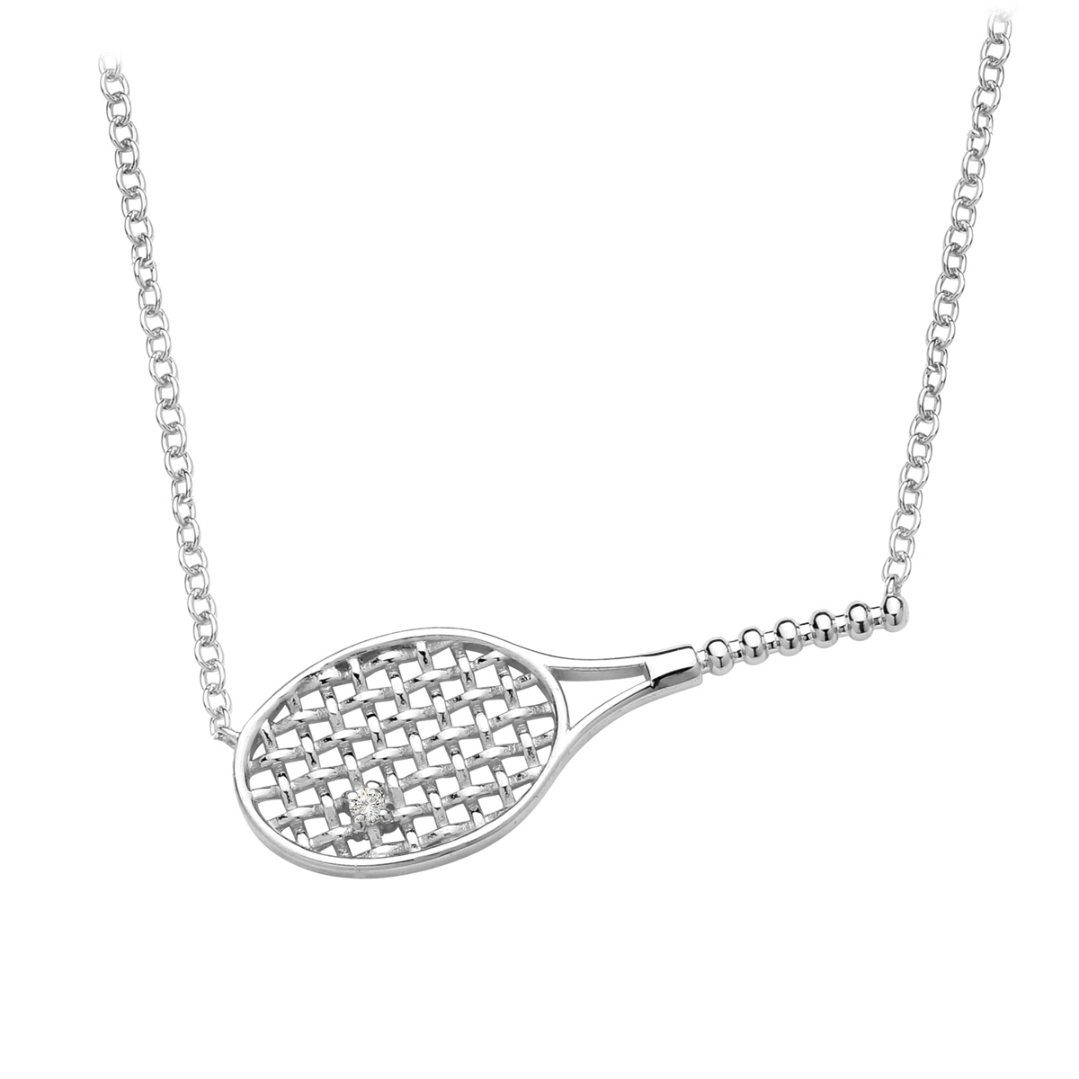 Silver Tennis Racket Necklace with Lab-Grown Diamond