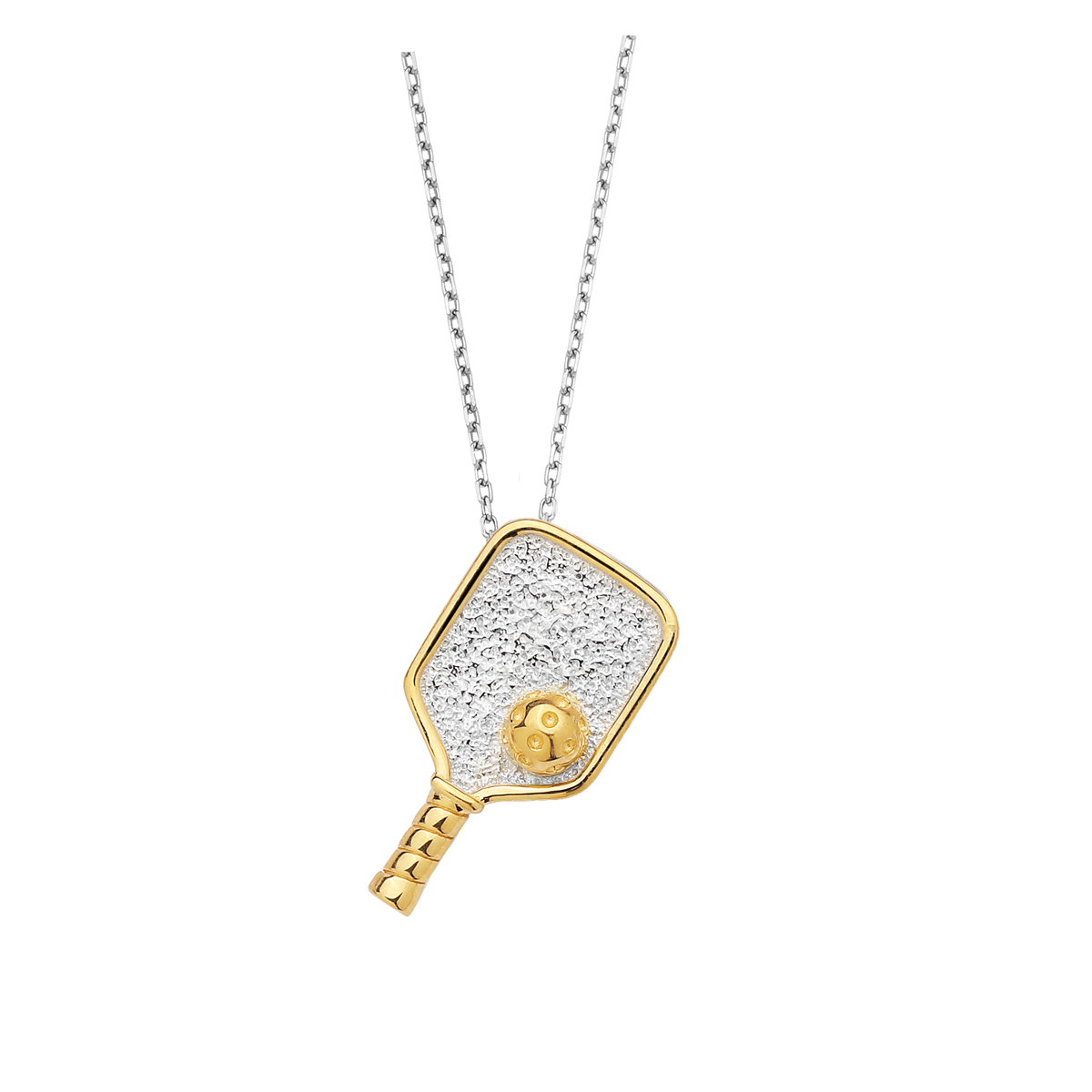 Silver Pickleball Textured Paddle with Ball Hidden Bail Pendant